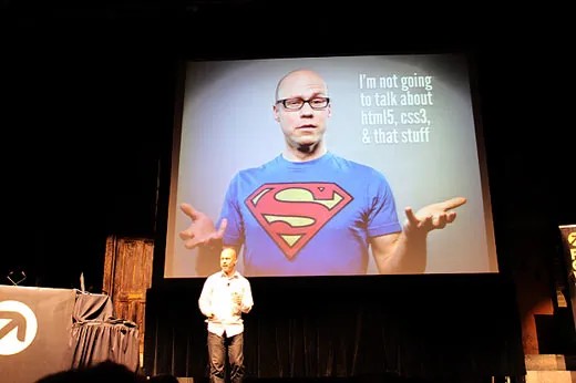 Dave Shea (wir verbeugen uns) erzählt uns über die heißen Topics bei CSS3. Er selber hat überhaupt keinen Überblick mehr was derzeit abgeht und es wird bereits an einem Draft von CSS4 und CSS5 gearbeitet (WTF?) Dennoch gibt es in Bälde tolle Möglichkeiten für bessere Typografiedarstellungen und Texteffekte. Typografie spielt eine unglaublich große Rolle hier. Ganz besonders aufregend ist, dass in bereits 2 Jahren der Browser Chrome, Firefox überholen wird. Floats wird es bald nicht mehr geben, dafür gibt es bessere Möglichkeiten mit Columns um Texte automatisch fließen zu lassen. Hier gibt es einen Überblick was derzeit an CSS3 genutzt werden kann: http://Caniuse.com/