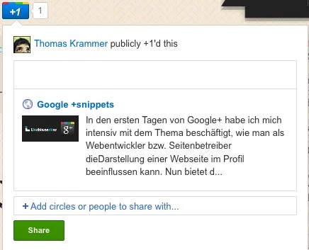 Um das auszuprobieren könnt ihr ganz einfach den +1 Button am Ende dieses Beitrages klicken und wenn ihr „Share on Google+“ klickt solltet ihr ein ähnliches Ergebnis erhalten: