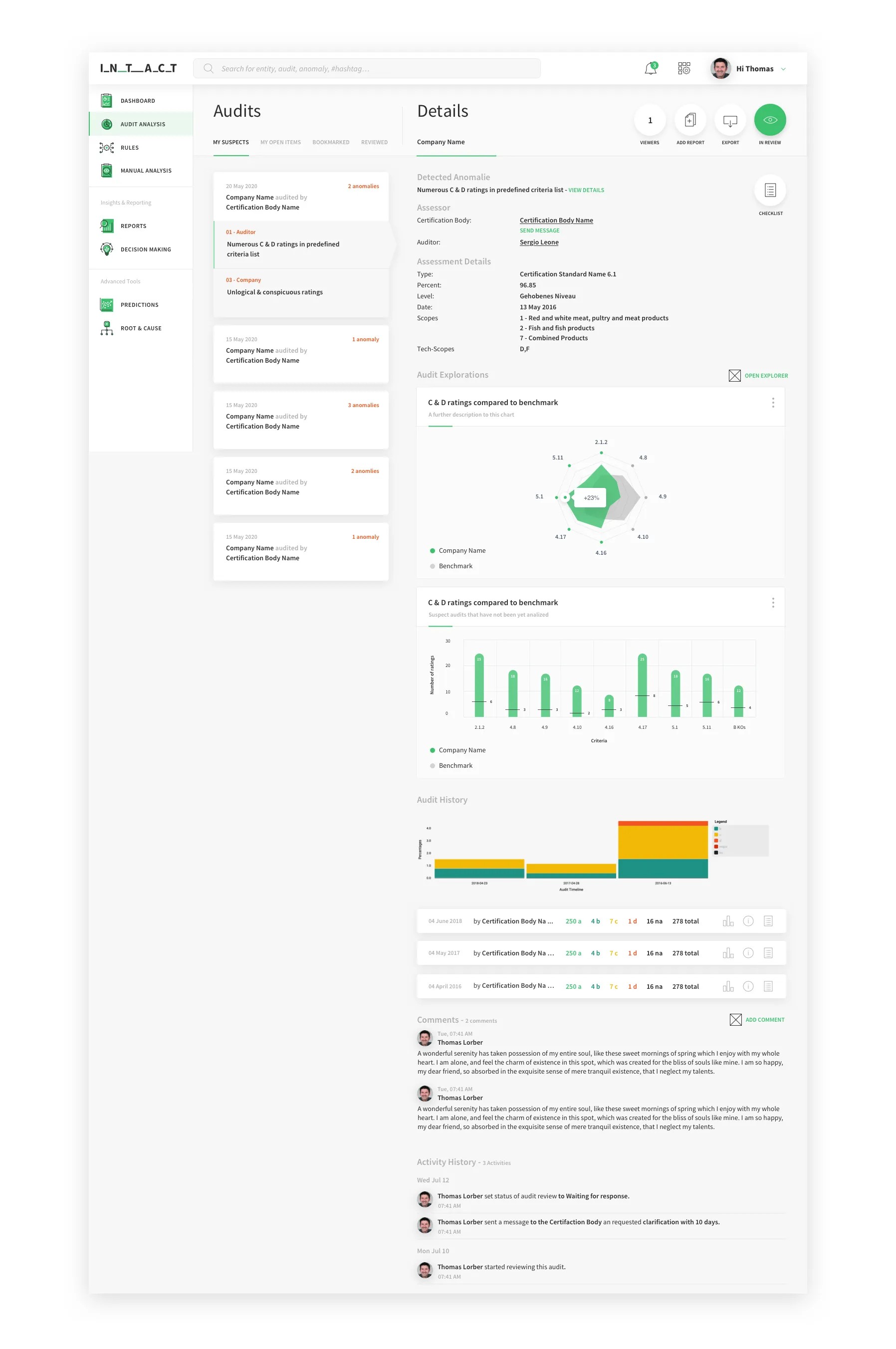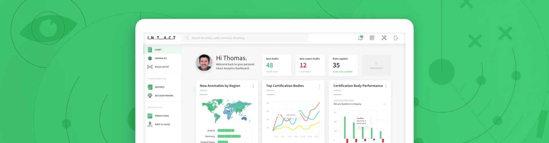 Mit Intact Systems, dem führenden Experten für ERP und Management Lösungen für Audits, Zertifizierungen, Verifizierungen, Accredidation und Standard Management, begaben wir uns in ein extrem spannendes Industriegebiet um eine Dashboard-Applikation wie aus dem Bilderbuch zu schaffen, die die Analysearbeiten von Audit Assessments in der Testing, Inspection and Certification Industry (TIC) revolutionieren wird.